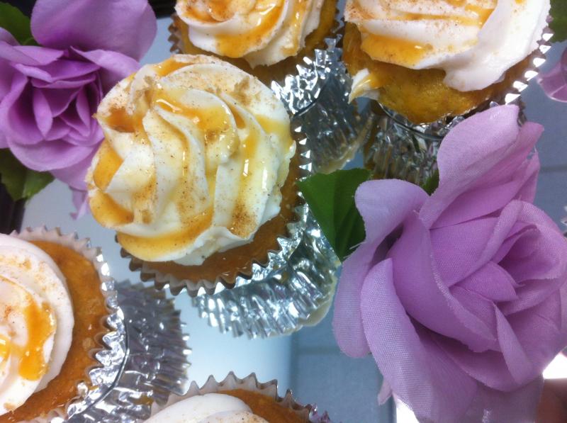 Imagine candied sweet potatoes in a cupcake and you're on the right track. Plenty of cinnamon, nutmeg, brown sugar and roasted sweet potatoes. Top it off with a cinnamon rum icing and a pure maple syrup drizzle.